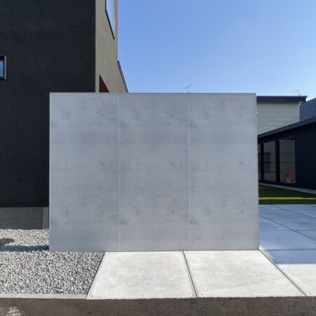 門柱17コンクリート打ちっ放しの塀にスリット材を組み合わせ、