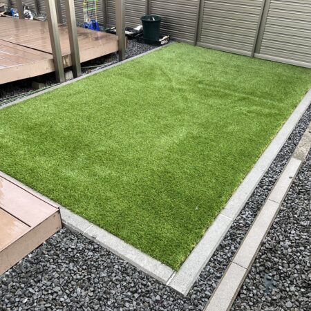人工芝29既存のフェンスと、既存のウッドデッキの間にワンポイントの緑を🍀
