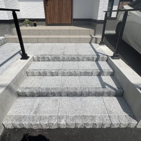 アプローチ36道路から玄関までの間に、□900の自然石の平板を敷きました!