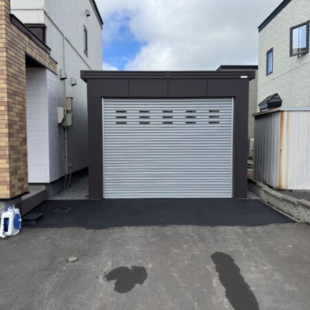車庫・物置24既存の車庫を撤去して、改めて車庫を設置しました。ダイワガレージTFGK-35H型で3スパン延長しております。
