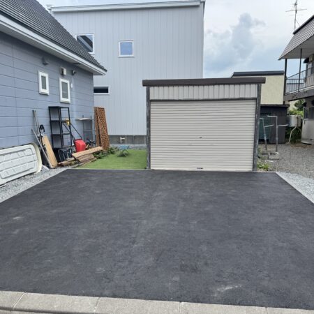 車庫の前は全面アスファルト仕上げです。