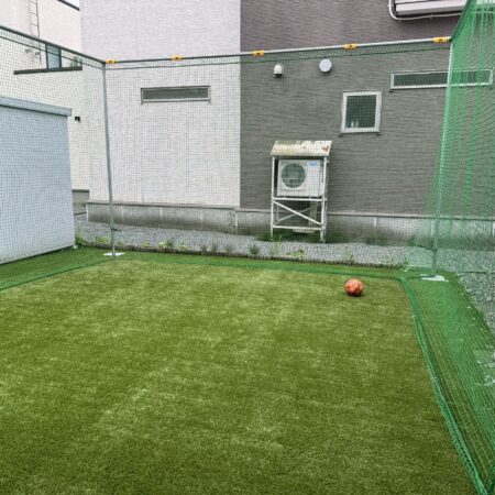 人工芝35既存の平板を撤去して、お子様の⚽練習の為に人工芝を敷いて周りには防球ネットを張りました!