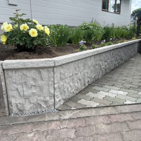 土留15既存の土留めを解体し新しい土留めを設置しました。また、お庭を縮小させて土留めを設置して自転車置き場を確保しました。