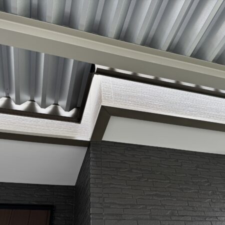 カーポート52お客様のご希望でカーポートから玄関に入るまでの隙間を無くす為に、カーポートの形を加工しました。