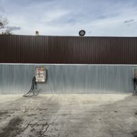 室外機の囲いと円形の花壇、ウッドデッキの側にある菜園スペースは