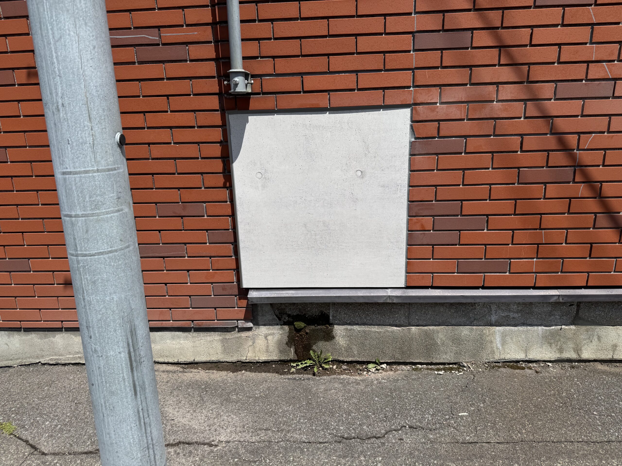 はがれて落ちてしまったタイル部分はアルミの複合版でふさぎました。
