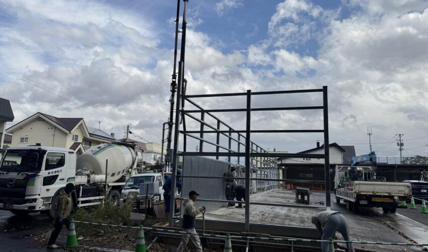 柱が組みあがり、キーストーンプレートが設置され始めてました✨