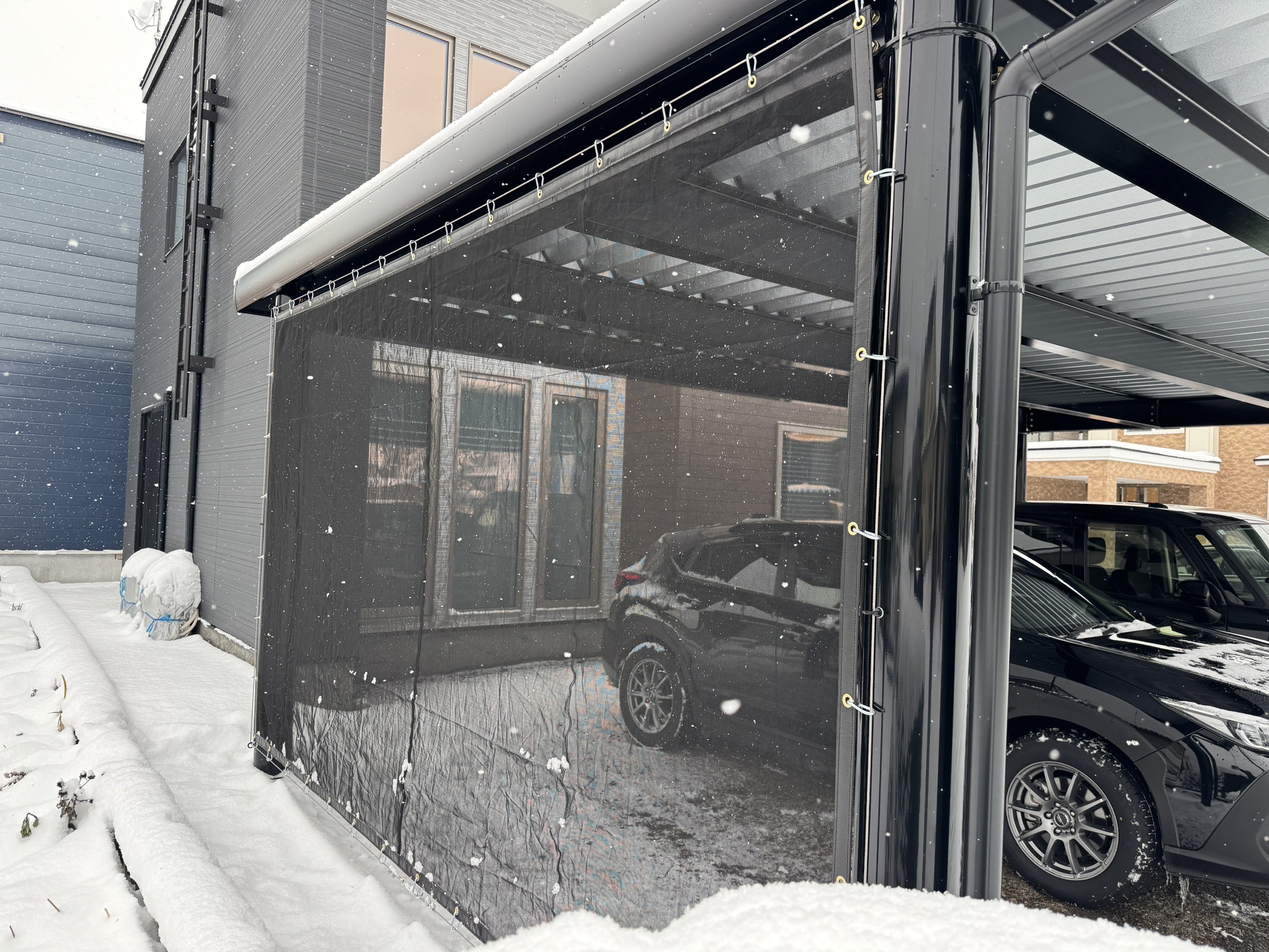 カーポート+防風ネットで、この冬は車の雪下ろしの負担が軽減して楽ができそうですね♬