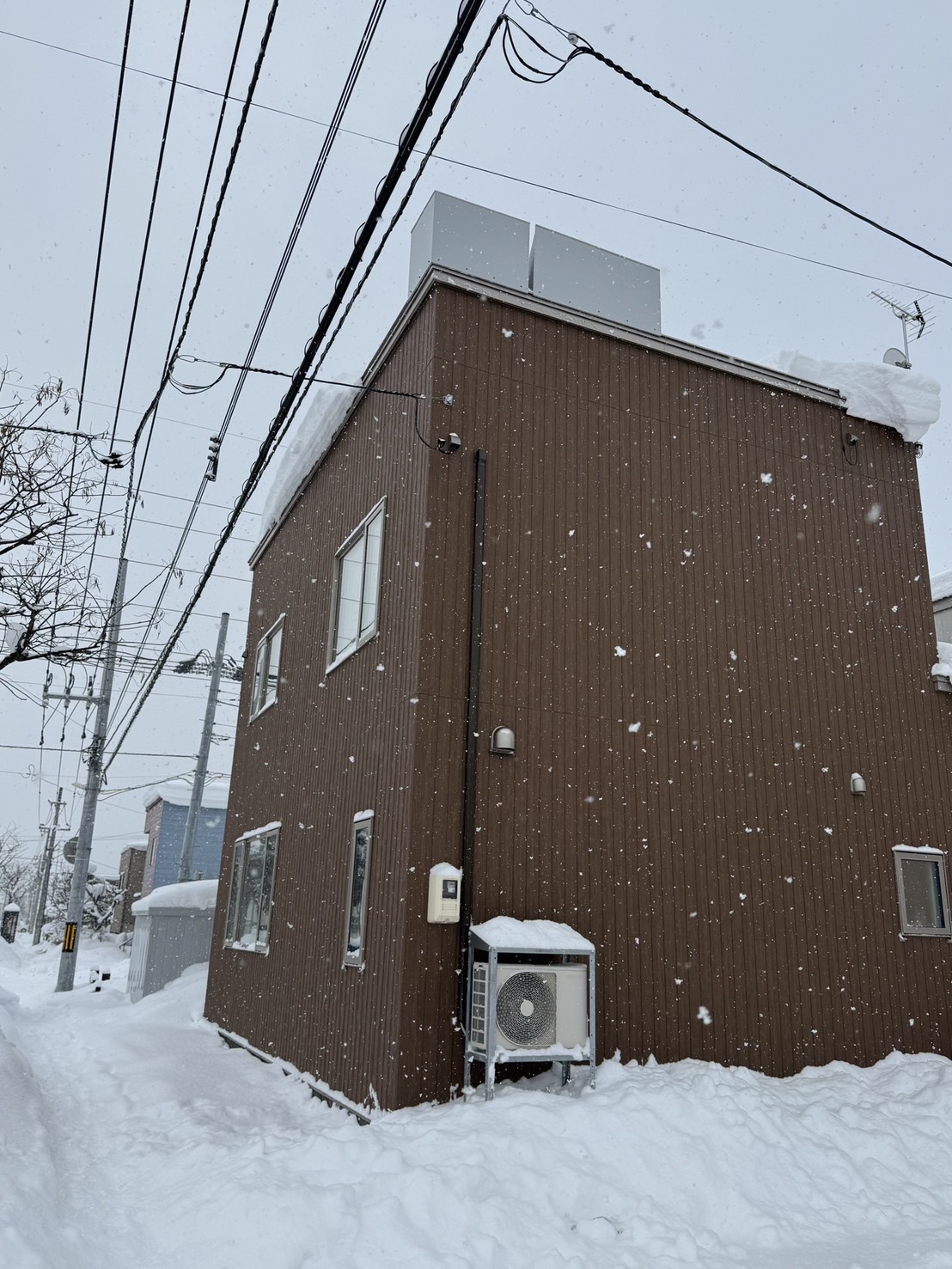 屋根に雪が積もると屋根よりもはみ出てきてしまいますね。