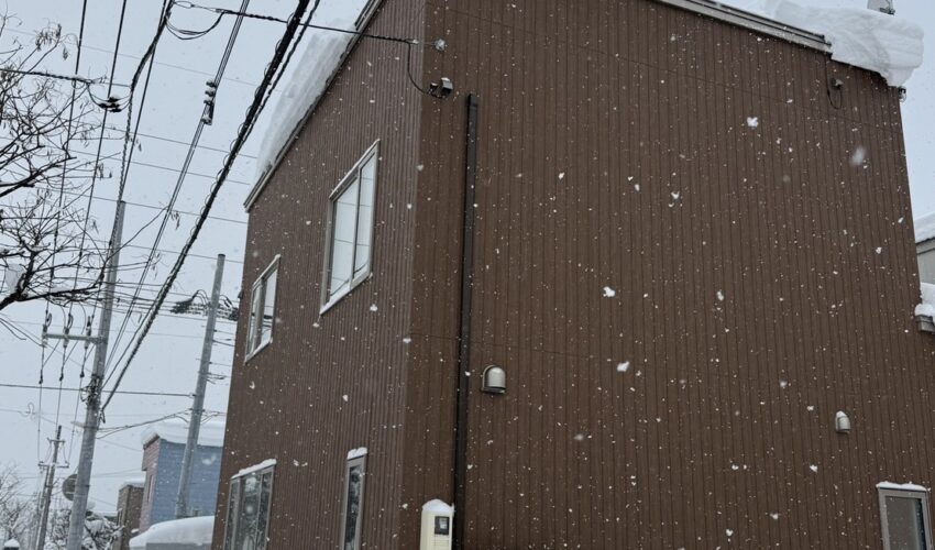 屋根に雪が積もると屋根よりもはみ出てきてしまいますね。