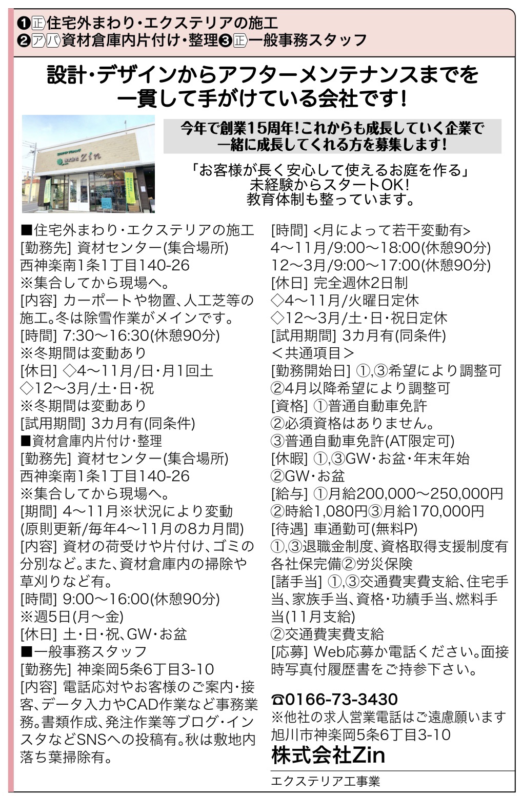 #旭川市 #旭川 #旭川外構 #外構 #外構工事 #旭川市外構工事 #外構デザイン #新築 #旭川新築 #カーポート #旭川カーポート #庭 #エクステリア #旭川エクステリア #癒し空間 #家族の笑顔 #求人 #正社員 #一緒にはたらく仲間募集中 #一般事務 #事務スタッフ #株式会社zin