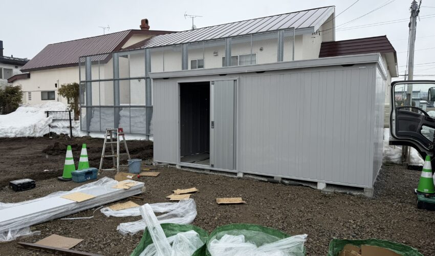 工事も少しずつ進み、まずは物置が完成しました😊