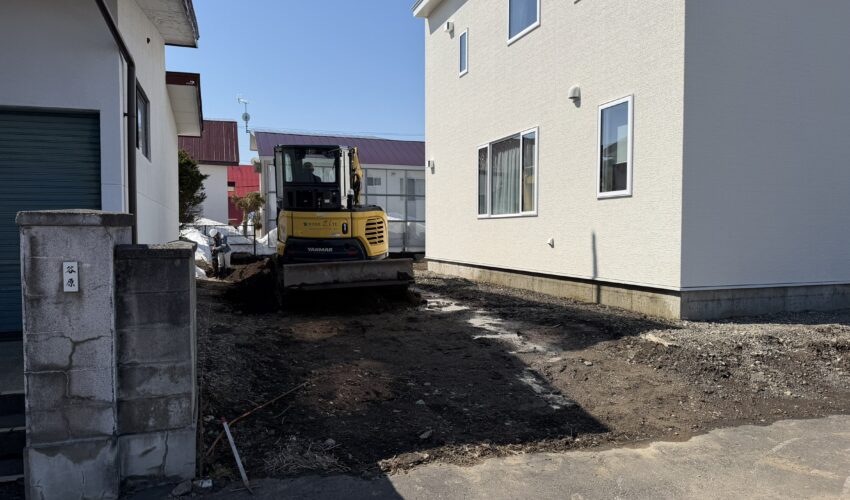 現在は、重機を使用して下地に必要な高さの分を掘り下げる作業を行い、掘削した土の搬出を進めています🚧