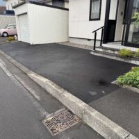 既存の融雪槽を撤去してアスファルトを剥がし、下地からやり直して新たにアスファルト仕上げにしました。 また既存カーポートを撤去し、新たにスチール2台用カーポートを設置しました。 色:アーバングレー 柱:丸柱