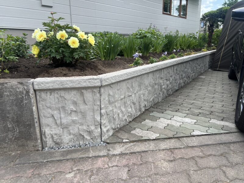 既存の土留めを解体し新しい土留めを設置しました。また、お庭を縮小させて土留めを設置して自転車置き場を確保しました。